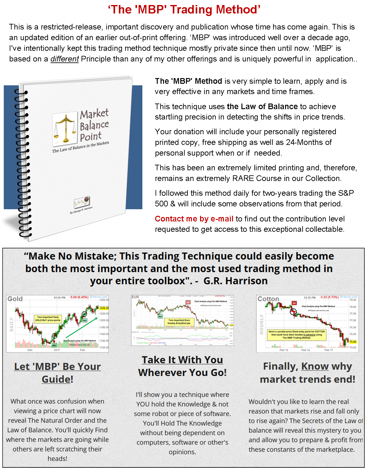 If you're one of those Traders who's also a SEEKER of the deeper truths about the Markets & Timing, then, I'd like to suggest that you'll absolutely love 'the MBP Trading Method'. I tracked this very method for two-years every trading day for trading signals for the S&P 500 Index.
