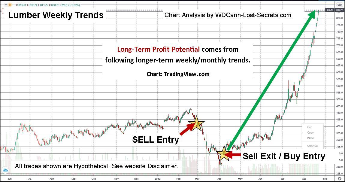 In the case of the Lumber Market shown above, many were 'shocked' that prices could rise in the midst of all this pandemic hoopla, however, those who stood back a little and examined the longer-term trend at the Weekly & Monthly level of Time, save the shift to an upwards trend back in early April.