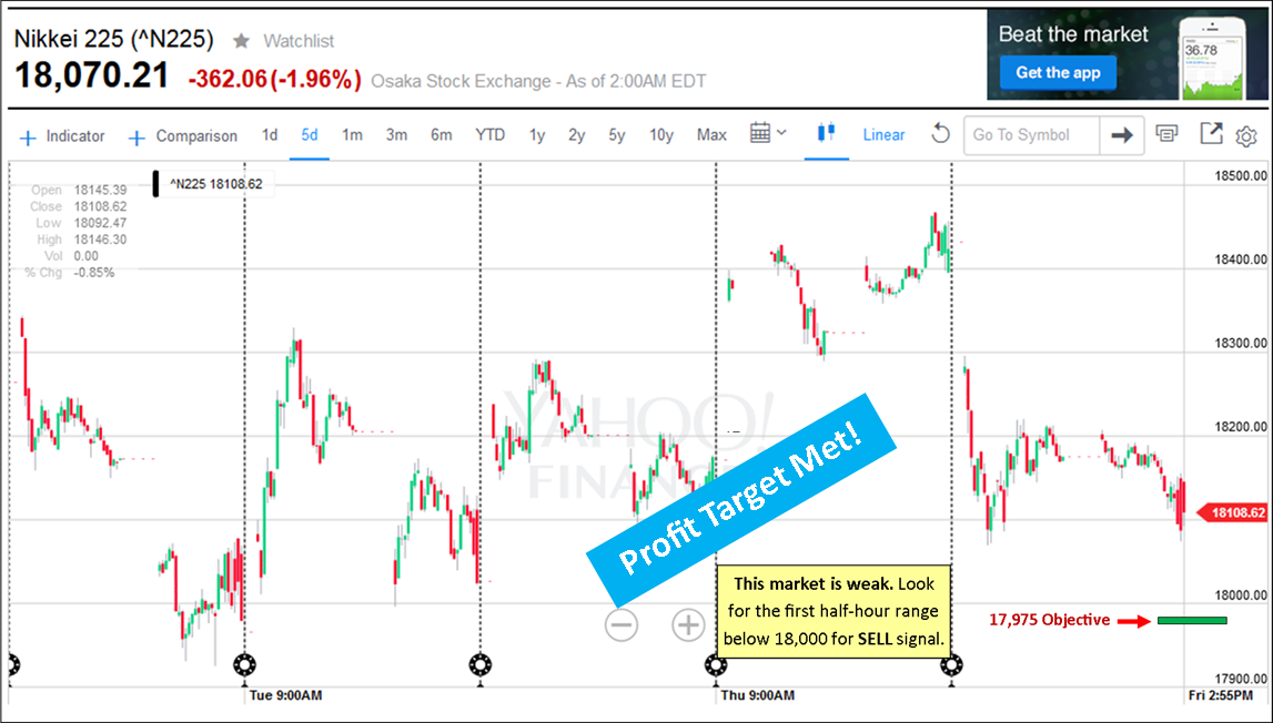 *For the Nikkei 225 Trade: The Profit Target was met on Wednesday: + $125