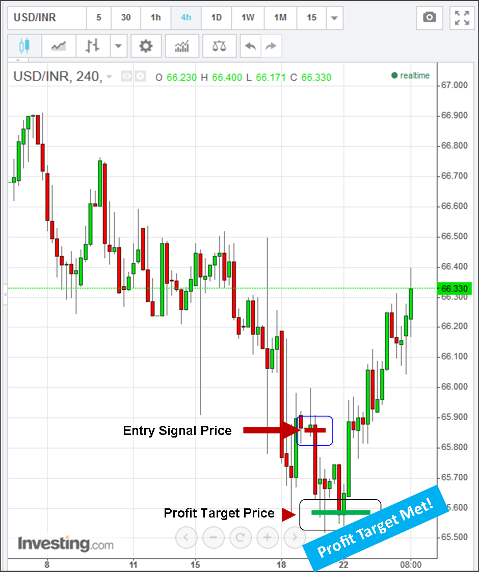 *For the USD/INR Trade: Profit Target was met by Monday: +265 pips