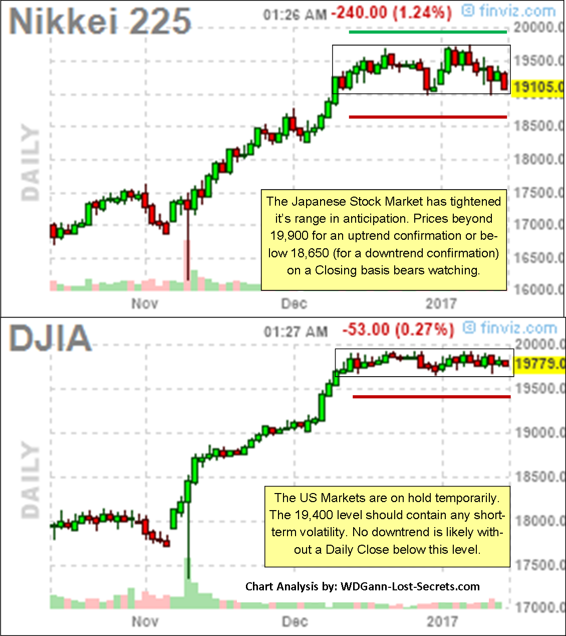 I've provided a few price points to watch in the Nikkei and the Dow in the charts to the left.