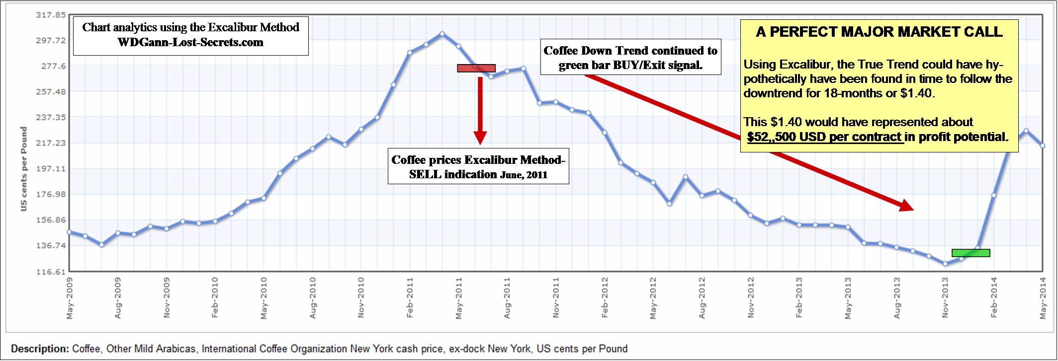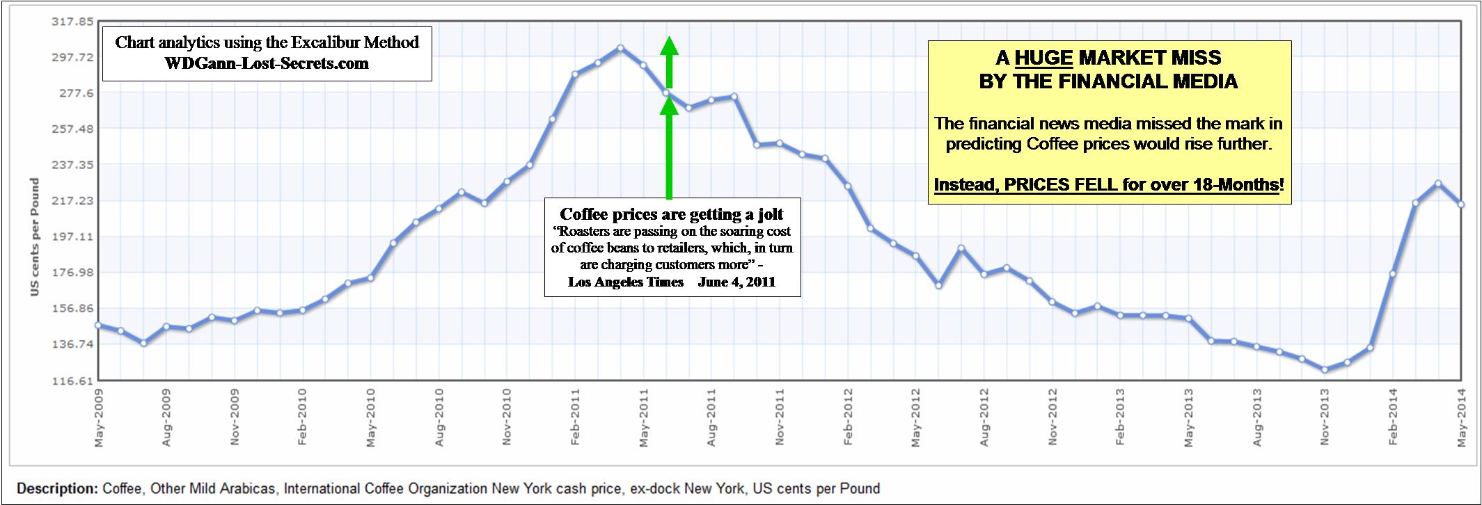 Instead, the time picked by this widely followed financial media outlet for the ‘old’ uptrend to be over, actually ended up pinpointing what became the beginning of a major shift downwards and the absolute worst point at which to BUY and enter the Coffee market.