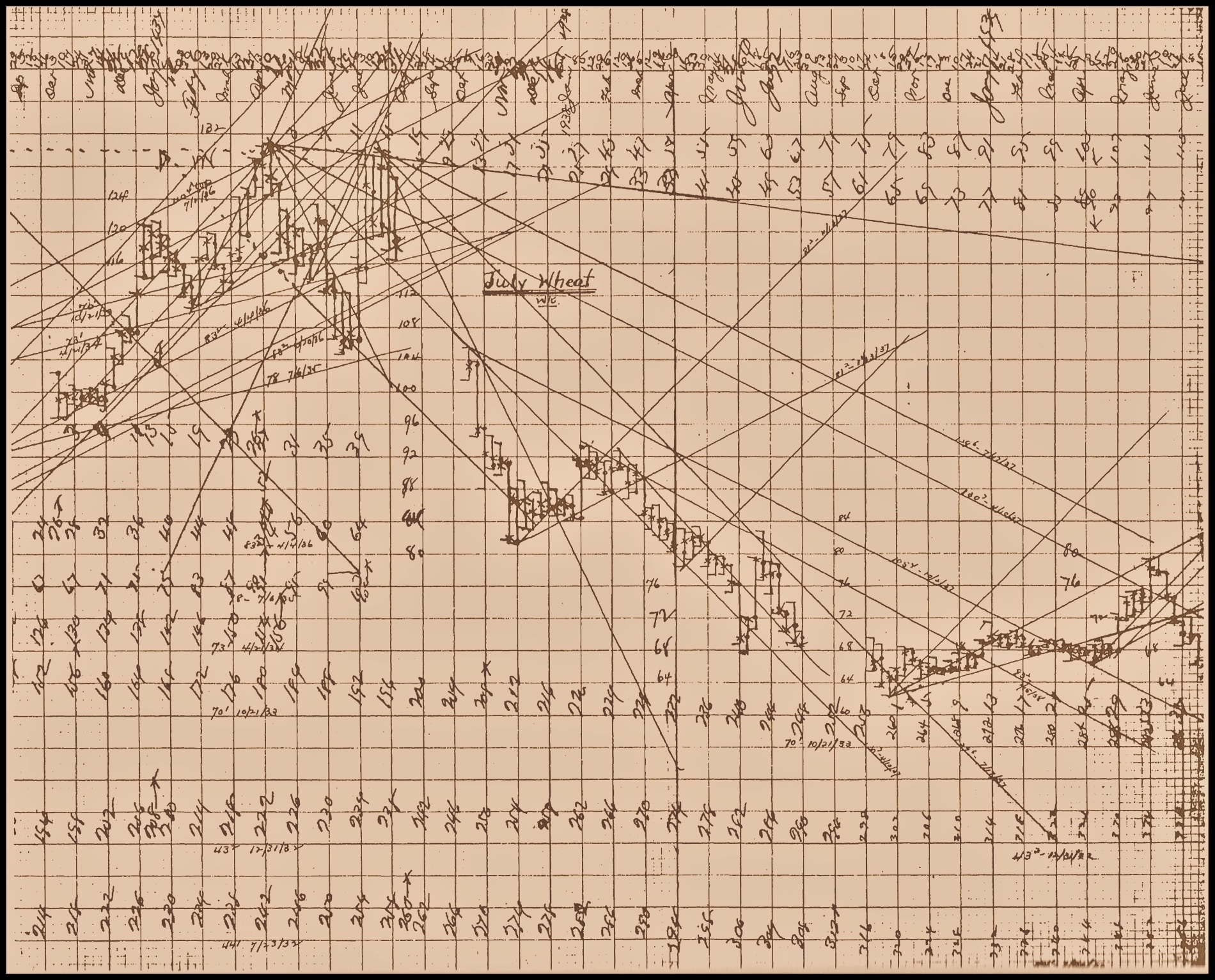 Admit it! Wouldn't it be nice to actually understand what's really going on, on W.D. Gann Price Charts like the one just above? To actually know the 'How's & 'Why's' of all the elements that Mr. Gann placed onto his private charts & papers?